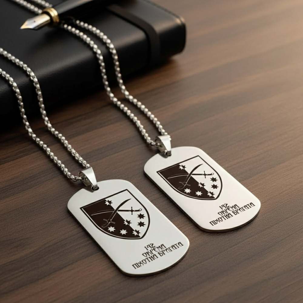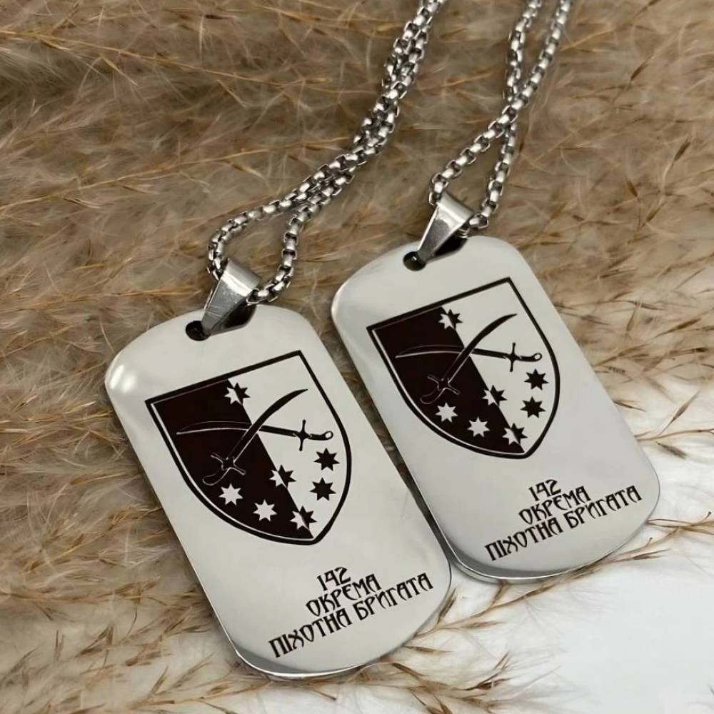 Армійський жетон з гравіюванням "Шеврон 142 Окрема піхотна бригада". Те, що носять з гордістю. Те, що завжди поруч.