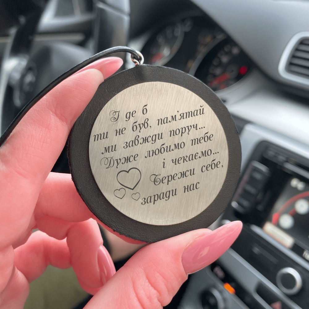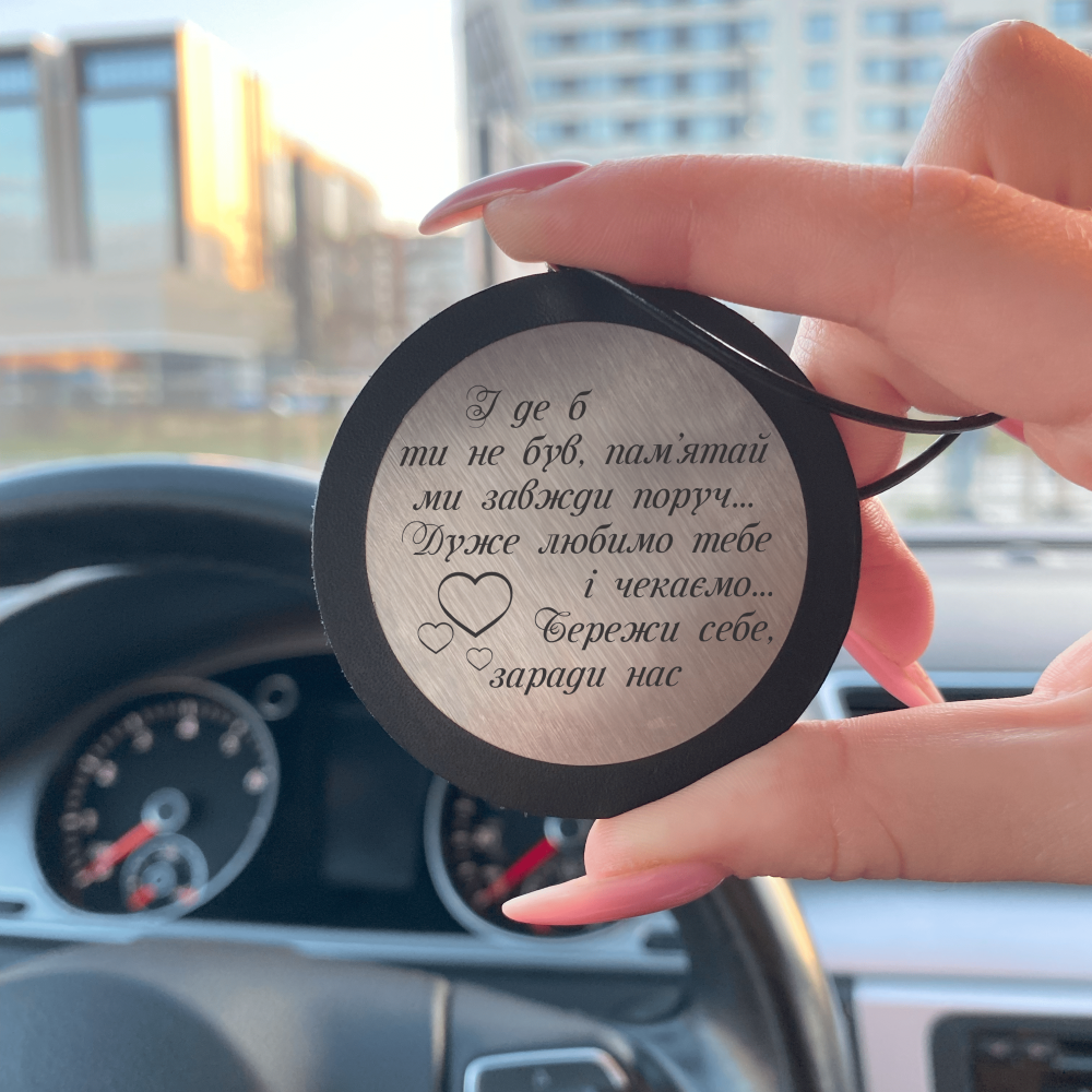 «І де б ти не був, пам'ятай ми завжди поруч.... Дуже любимо тебе і чекаємо.... Бережи себе, заради нас» — це не просто аксесуар у салон, а справжній оберіг у дорозі. Вона створена для тих моментів, коли слова підтримки важать більше за будь-які подарунки. Коли людина далеко, в поїздках, на роботі, у відрядженні чи просто часто за кермом — цей напис стає тихим голосом рідних, який завжди поруч.