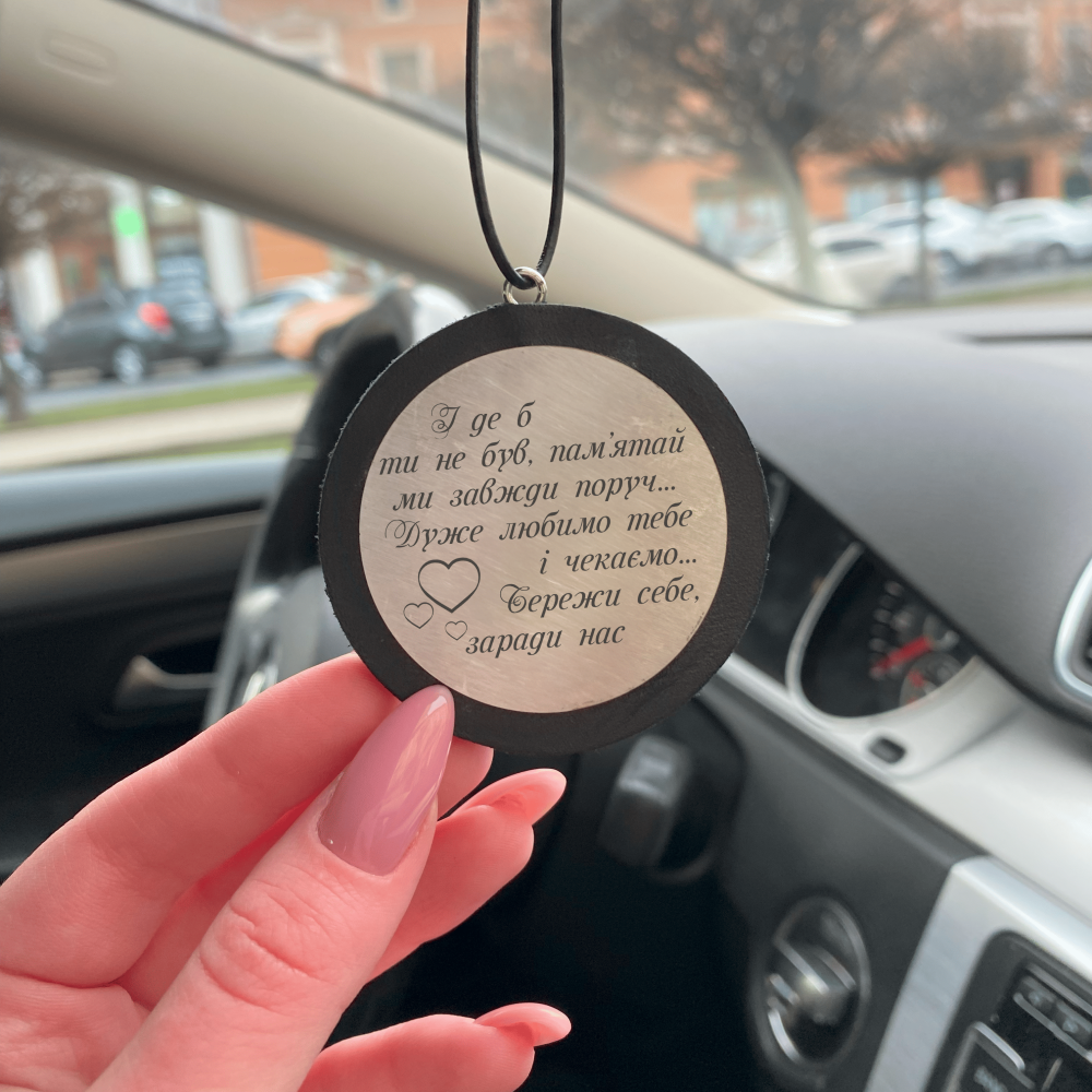 Підвіска гармонійно виглядає на дзеркалі заднього виду, додає салону душевності й нагадує про найцінніше — про тих, хто любить і чекає. Це подарунок, який не припадає пилом на полиці, а щодня супроводжує в дорозі та дарує відчуття дому навіть на відстані.