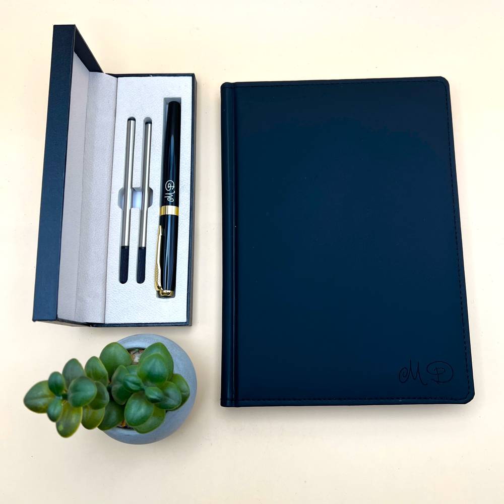Блокнот з ініціалами та ручка з лазерним гравіюванням — стильні аксесуари, які легко впишуться в робочі будні та домашні справи. На обкладинку блокнота та/або ручку можна нанести ініціали, важливу дату або коротку фразу — і зробити подарунок по-справжньому особливим. Такий набір — не просто красива річ, а ваш теплий знак: «Я поруч і ціную тебе».