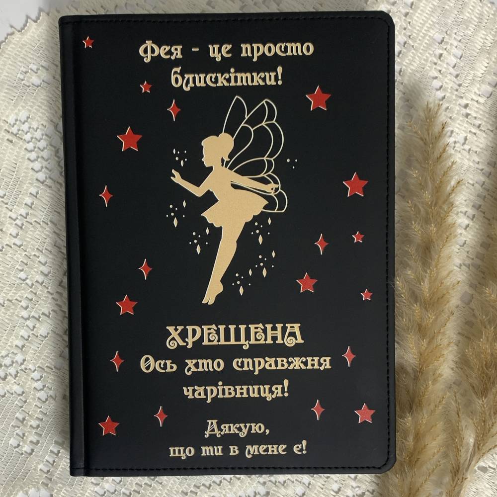 Блокнот стане зручним помічником на щодень: для списків справ, планів, рецептів, ідей, нотаток чи важливих записів. Він і практичний, і “з настроєм” — обкладинка щодня нагадуватиме хрещеній, наскільки вона цінна і особлива.