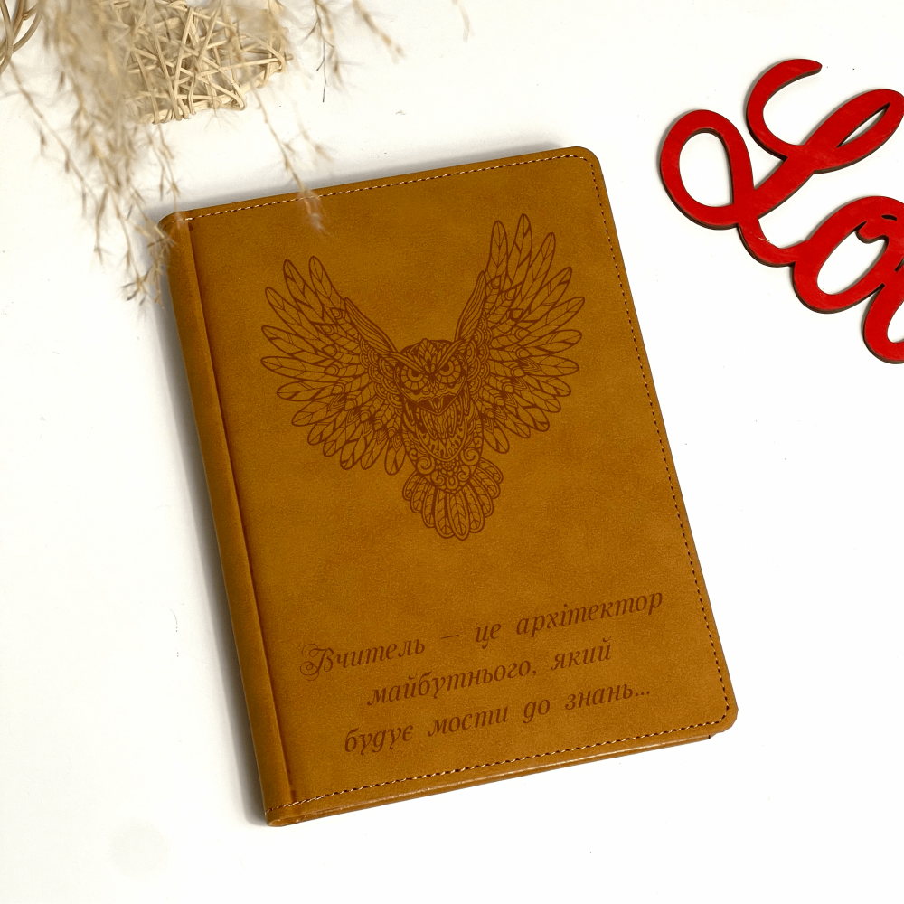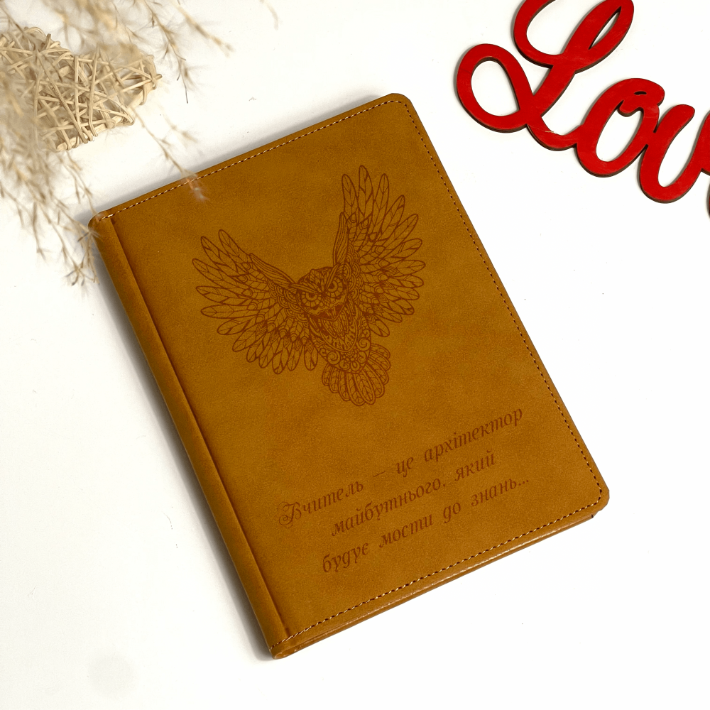 Блокнот-подарунок, гірчичний, з (персональним) гравіюванням — це статусний і практичний презент. Такий записник стане зручним помічником у щоденному житті і роботі: для планування, важливих нотаток, нарад, задач і робочих ідей — усе буде впорядковано й завжди під рукою.