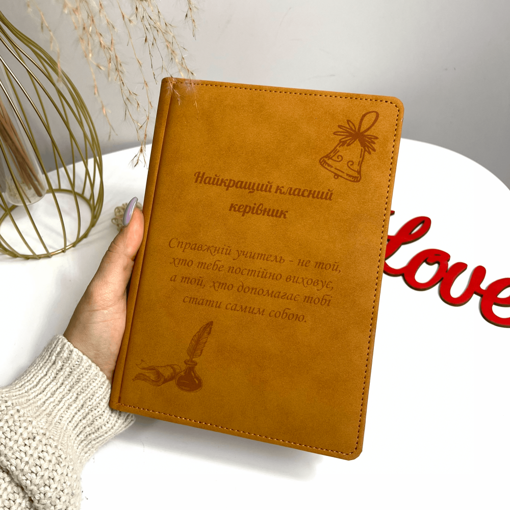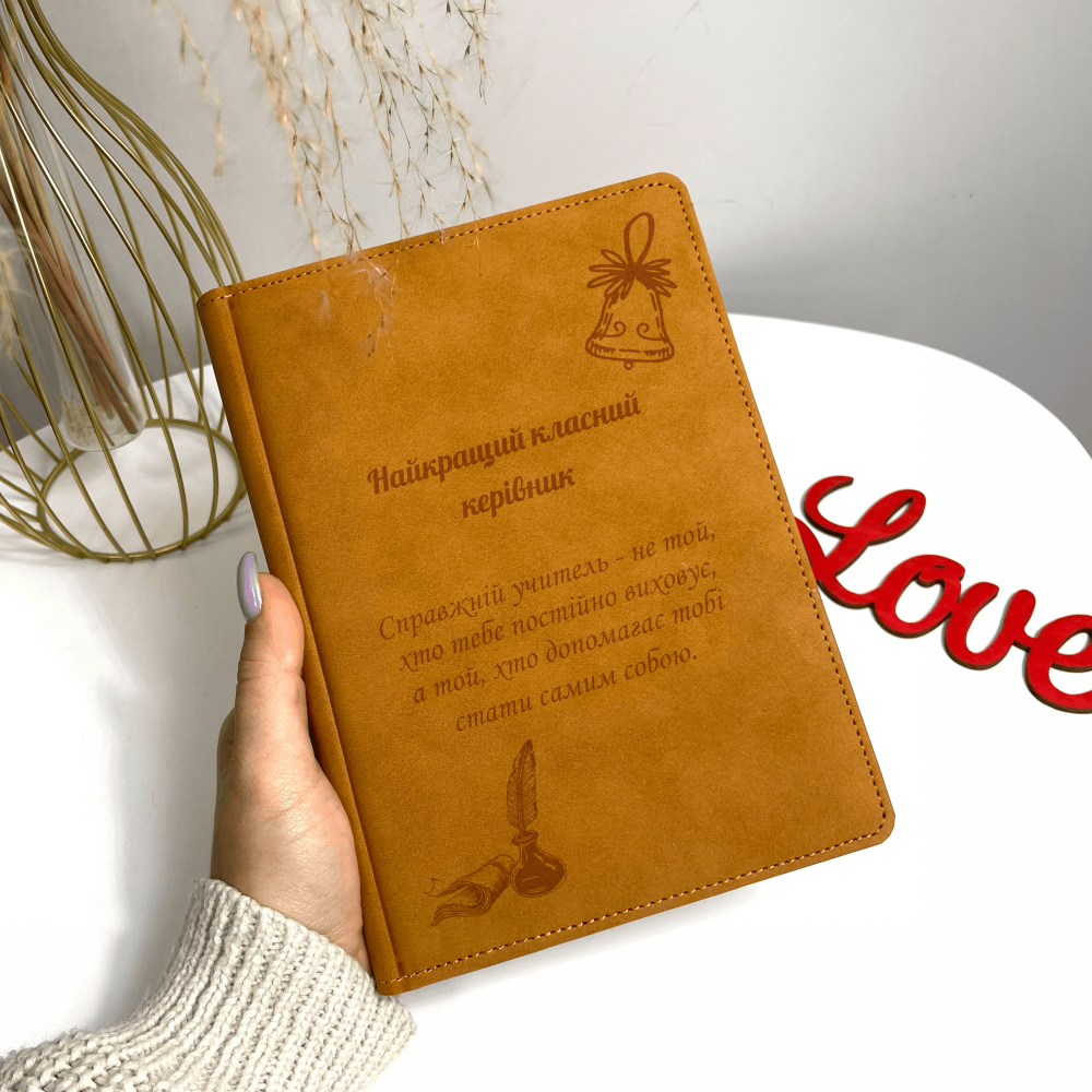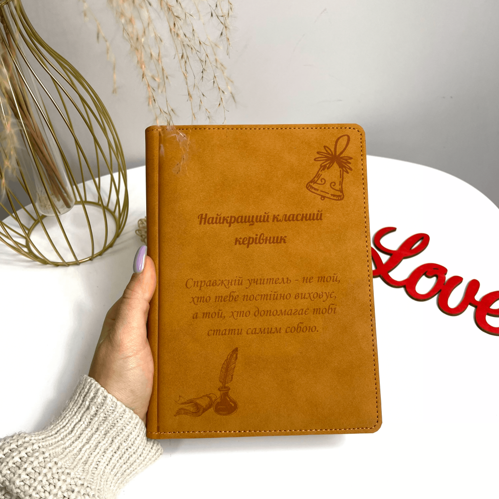 Блокнот Гірчичний з гравіюванням "Найкращий класний керівник ", подарунок вчителю на перший дзаоник, випускний, останній дзвоник