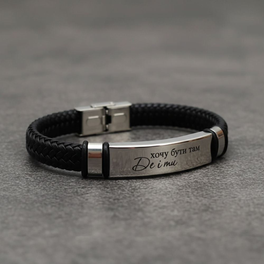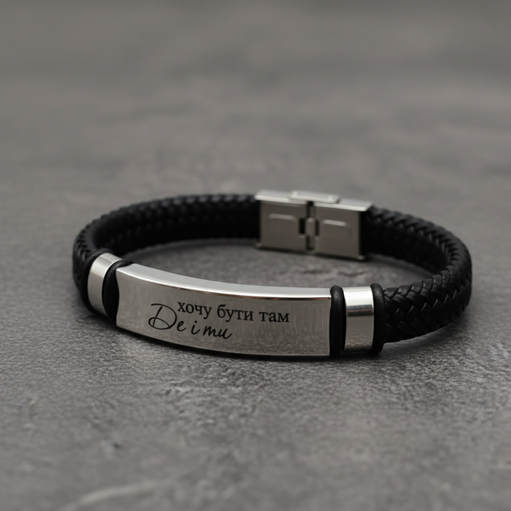 Браслет з екошкіри з гравіруванням "Хочу бути там де і ти"