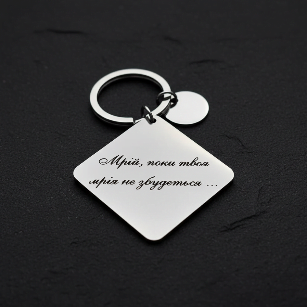 Хочешь, чтобы твой брелок был уникальным, как ты? Выбери свою надпись — имя, слоган, мотивацию или даже секретное заряжающее на день слово! Это не просто брелок, это маленький талисман, всегда с тобой.