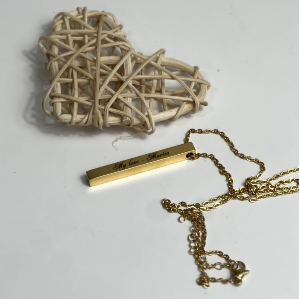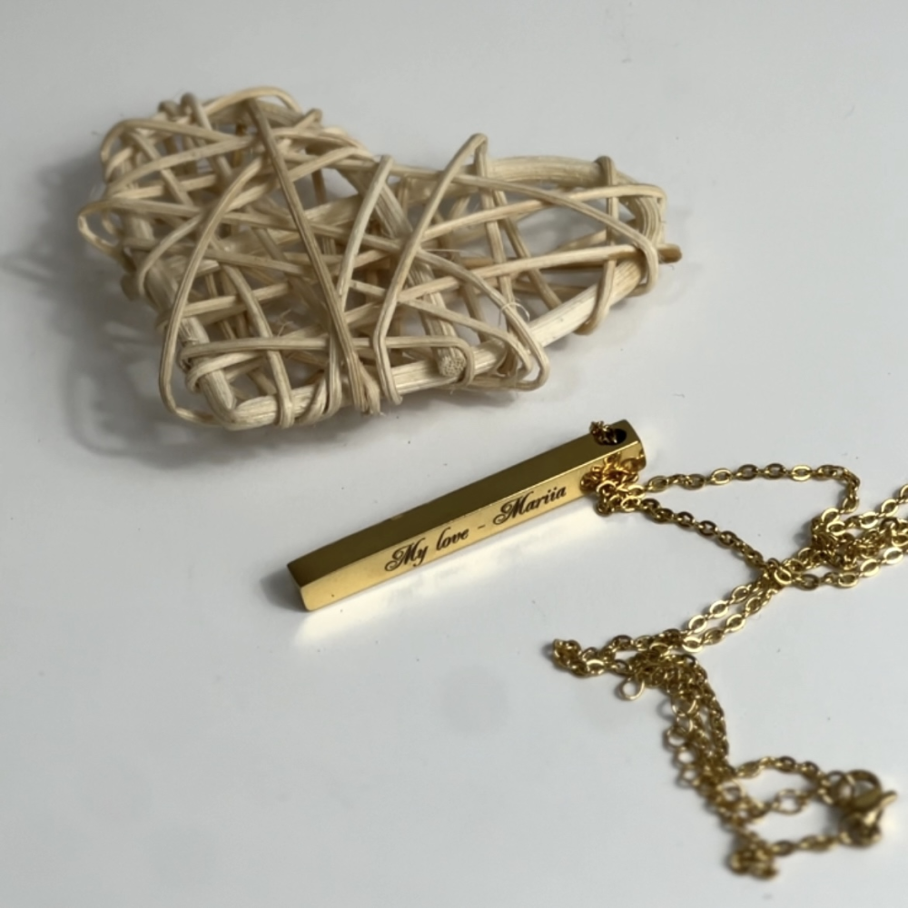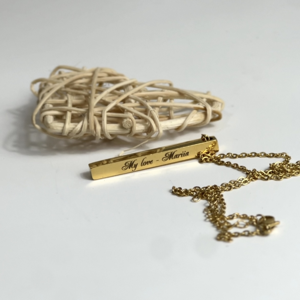 Украшение-столбик с гравировкой и крепкой цепочкой станет прекрасным подарком для женщины, которая любит элегантные и уникальные аксессуары.