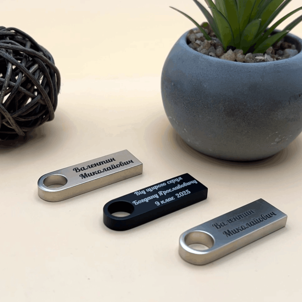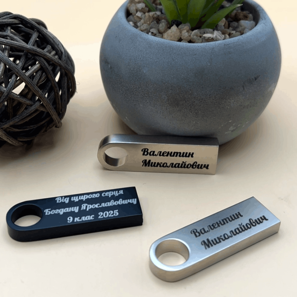 Це не просто носій інформації, а стильний аксесуар, який можна персоналізувати: нанести ім’я та прізвище, посаду, назву компанії, логотип, клас/школу, коротке побажання або подяку. Такий подарунок приємно отримати і зручно використовувати щодня — для навчальних матеріалів, презентацій, документів чи важливих файлів.