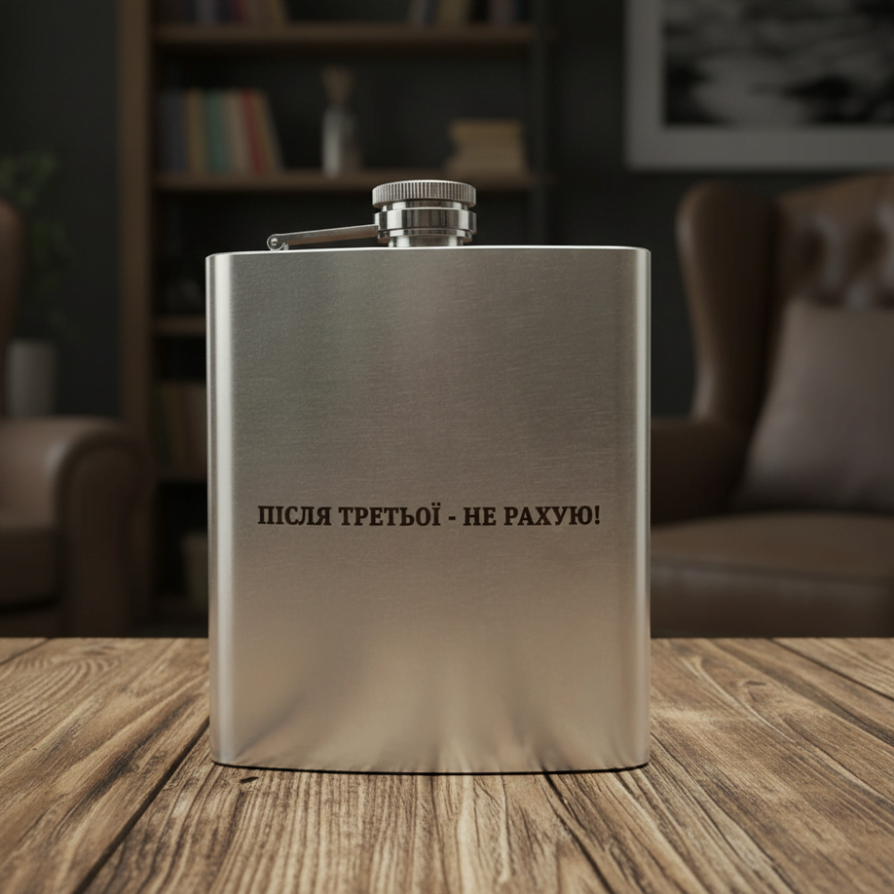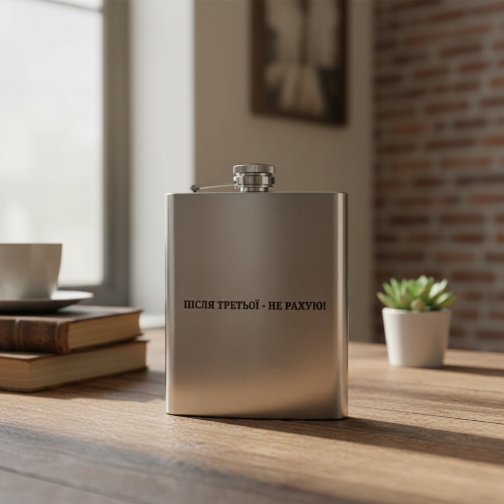 Это не просто фляга. Это стиль, сила и немного бунтарства — в блеске стали и выгравированных словах. Она предназначена для тех, кто любит иметь свою «резервную» поддержку всегда под рукой. И для тех, кто ценит символические подробности с личным смыслом.