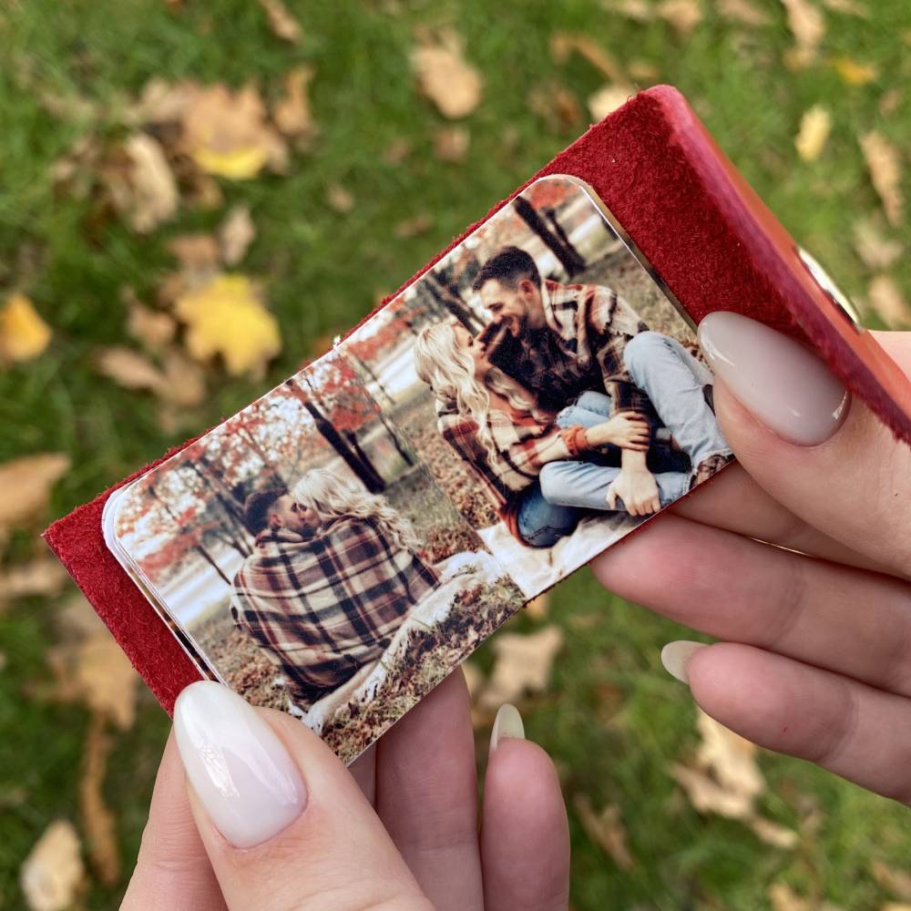 Компактный кожаный брелок, в котором можно носить маленький фотоальбом с важными моментами жизни.