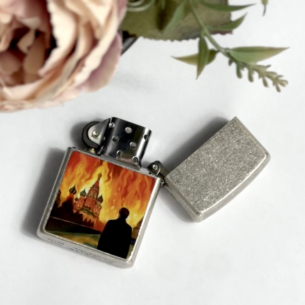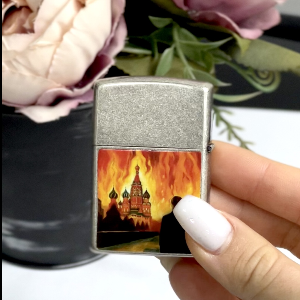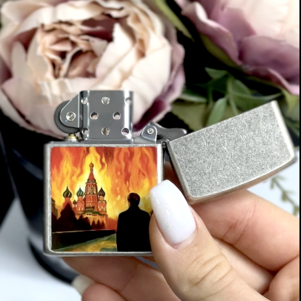 Запальничка виготовлена з якісної латуні, має міцний корпус і класичний бензиновий механізм, що добре працює в польових умовах. На лицьовій стороні — виразний тематичний принт із полум’ям, який додає настрою та символіки, а індивідуальне гравіювання (ім’я, позивний, дата або коротка фраза) робить подарунок по-справжньому особистим. Гравіювання не стирається та зберігає чіткість роками.
