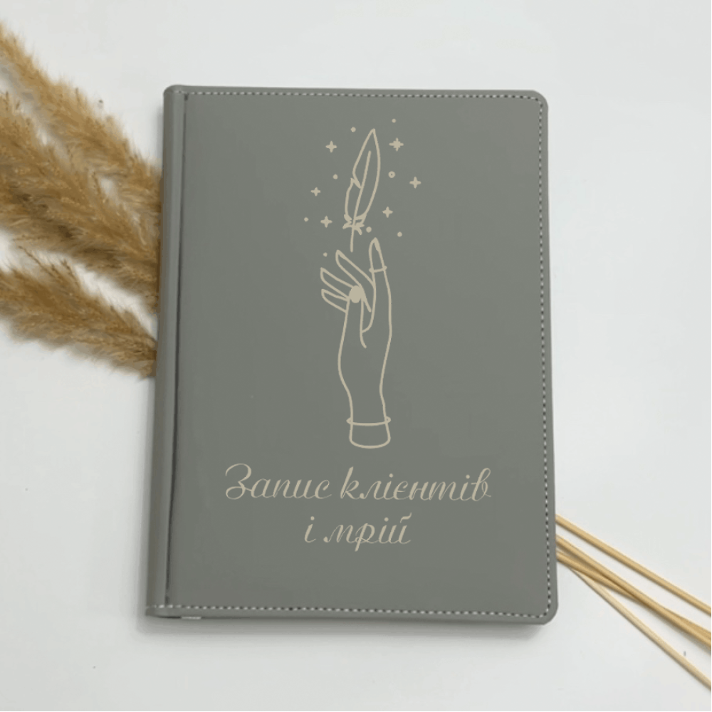Іменний блокнот із гравіюванням ''Запис клієнтів і мрій'' — персоналізований подарунок для працівника б'юті сфери (бровист, лашмейкер, майстер манікюра)