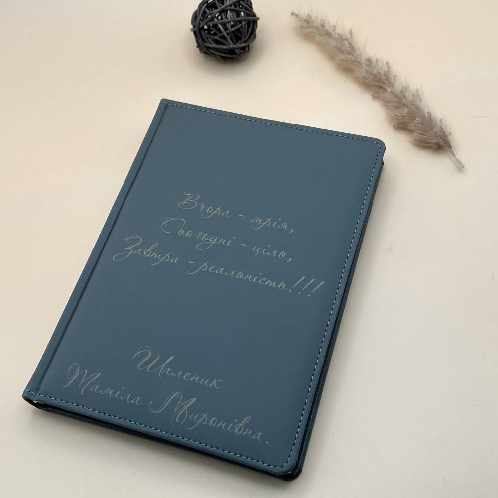 мотивуюче гравіювання на обкладинці (про мрії, цілі, розвиток);
