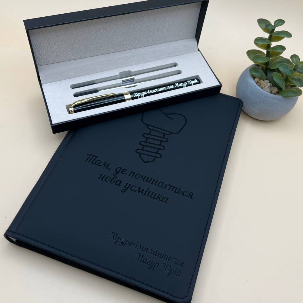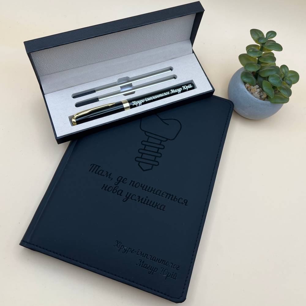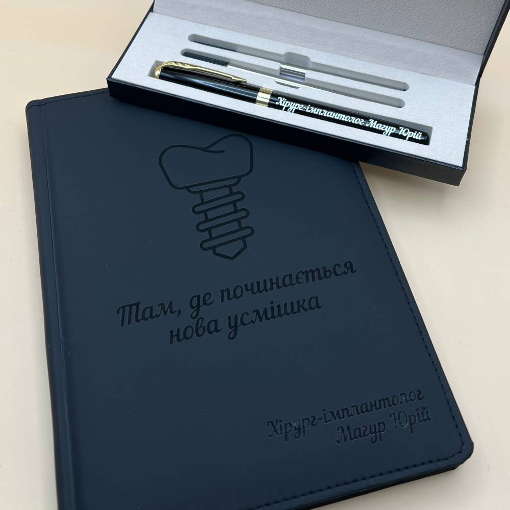 Іменний блокнот та ручка для імплантолога — оригінальний подарунок для лікаря-стоматолога
