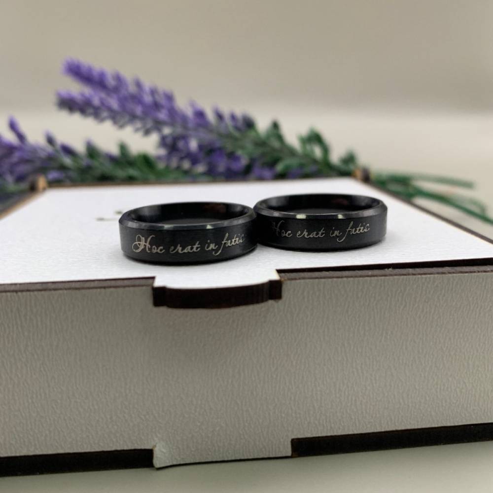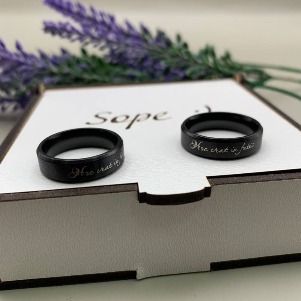 Колір гравіюваня: чорний - на срібній та золотій каблучці, срібний - на чорній.