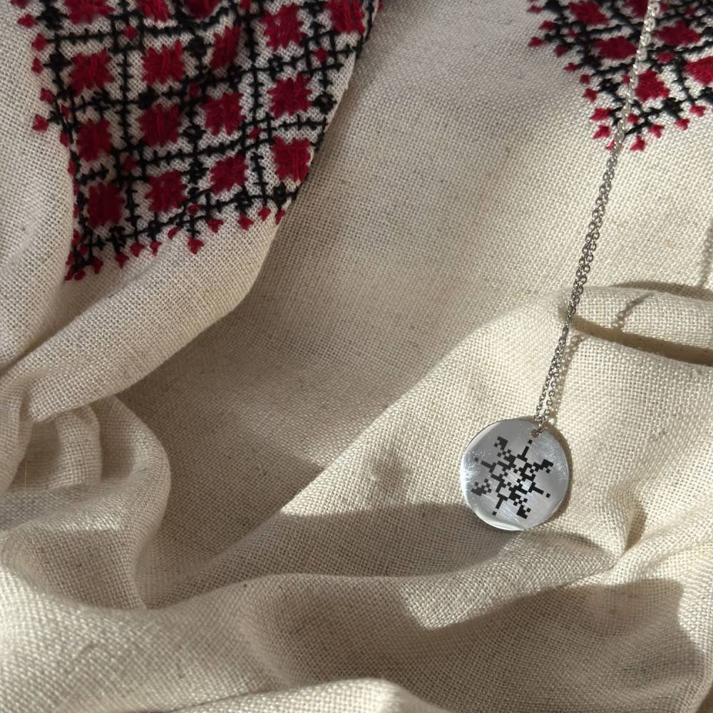 Кругла підвіска з зашифрованим словом в орнамент — стильна прикраса з прихованим змістом