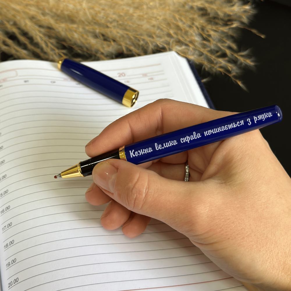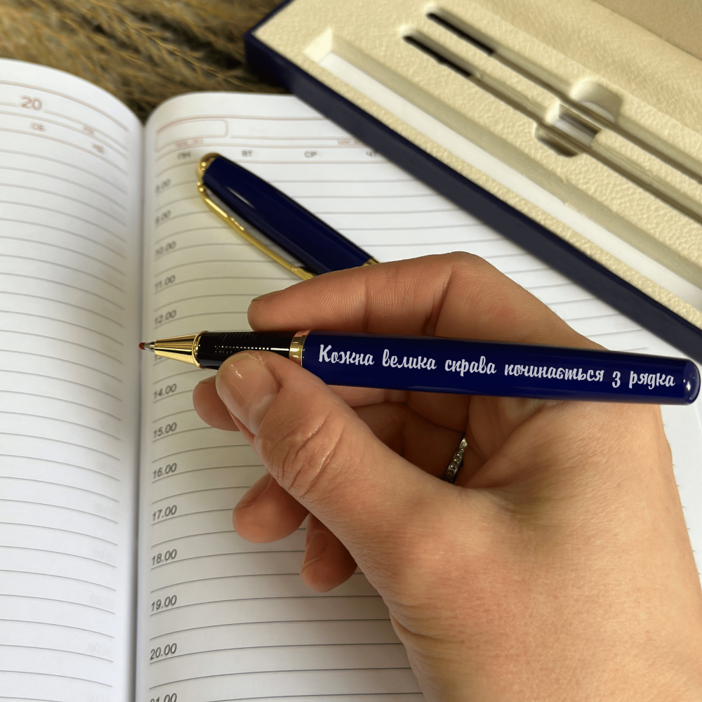 Лучший подарок подруге — ручка с гравировкой «Каждое большое дело начинается со строки» — это стильный и очень символичный презент. Она словно напоминает: любая мечта, цель или важный проект начинается с первого шага — с первой записи, плана, мысли на бумаге. Такая ручка каждый день мотивирует не откладывать, а начинать — мягко, но уверенно.