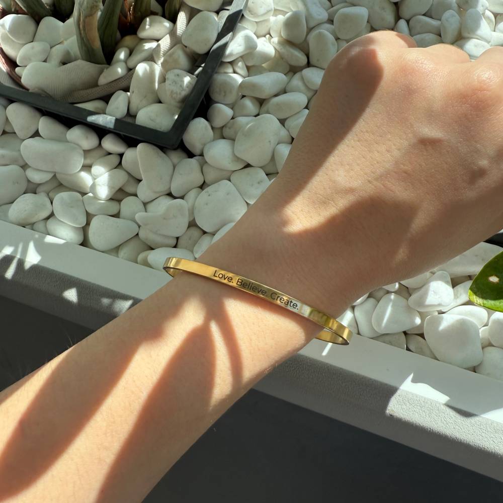 Цей браслет стане чудовим способом зберегти важливі слова, імена або дати поруч із собою. Гравіювання виконується з ювелірною точністю та залишається чітким і насиченим протягом багатьох років.