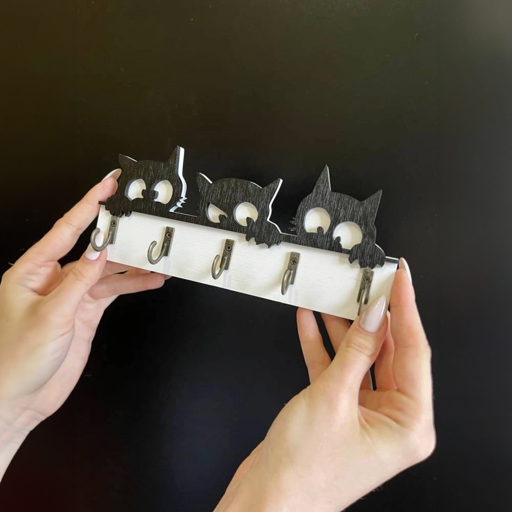 Ищете оригинальный вариант вешалки для ключей и мелочей? Тогда у нас есть отличное решение - это Настенная ключница "3 хитрые кошечки" из дерева. Она гарантированно привнесет уютную, теплую атмосферу в ваш дом, подарит настоящее эстетическое удовольствие и поможет держать все ваши ключи и мелочи на видном месте!
