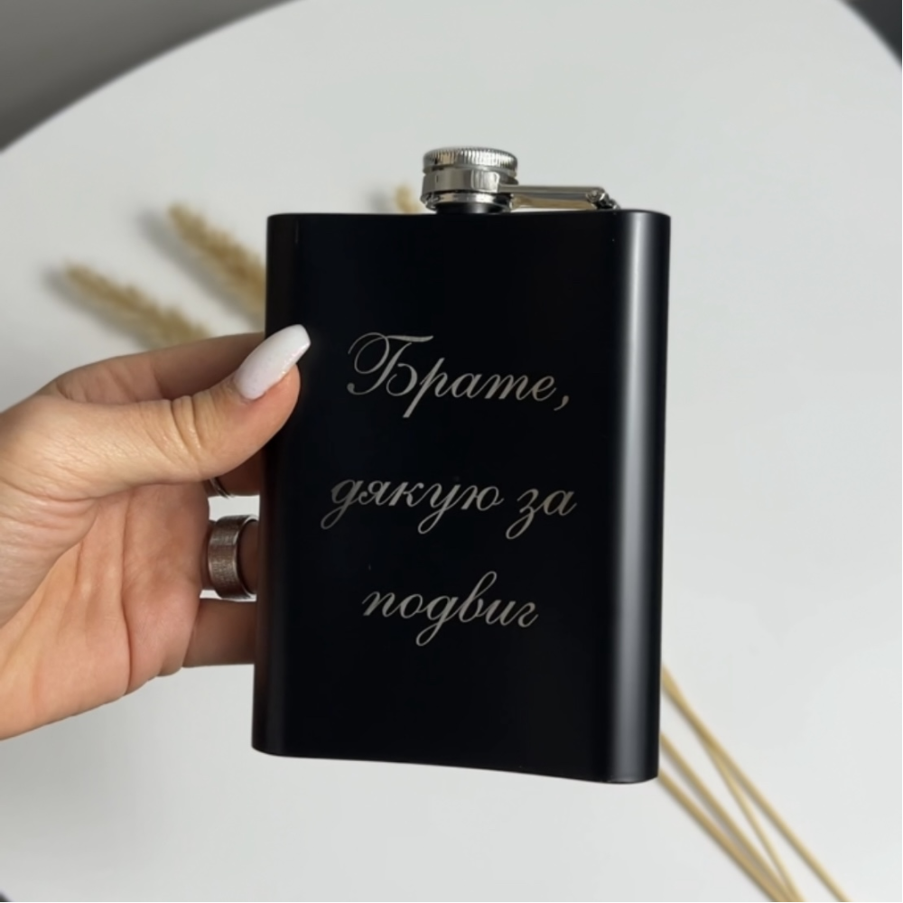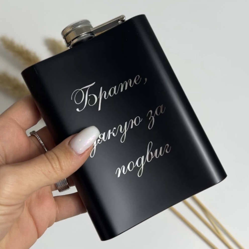 Неймовірний подарунок коханому, брату чи татові-військовому — фляга з персональним/фото гравіюванням — це лаконічний, стильний і по-справжньому особливий презент, який поєднує практичність і емоцію. Саме гравіювання робить флягу унікальною: можна нанести ім’я, позивний, дату, коротку фразу, або навіть фото-гравіювання — щоб подарунок став максимально особистим.