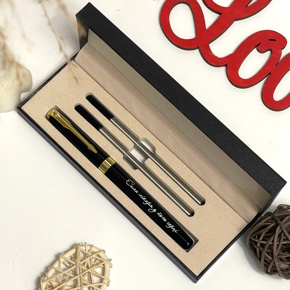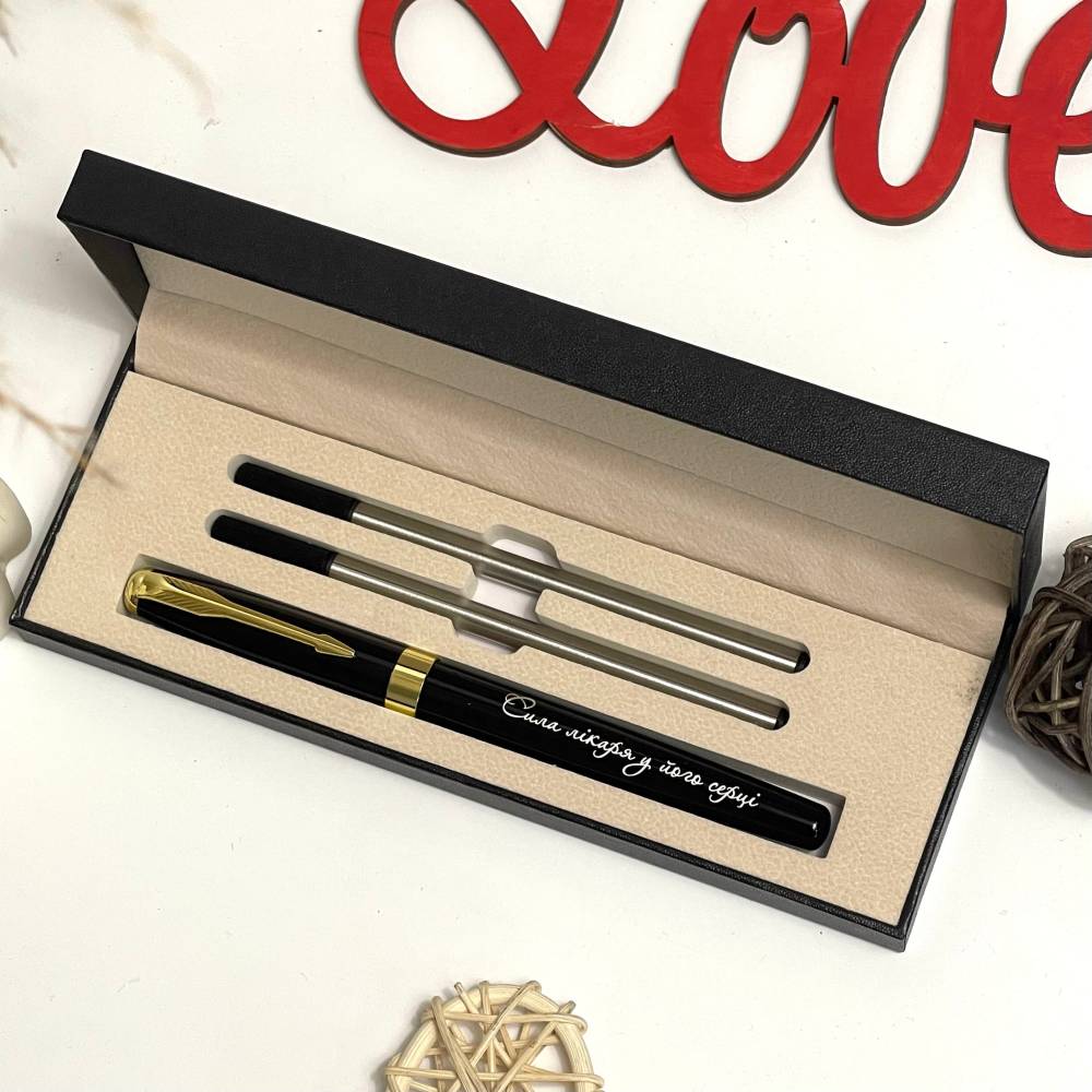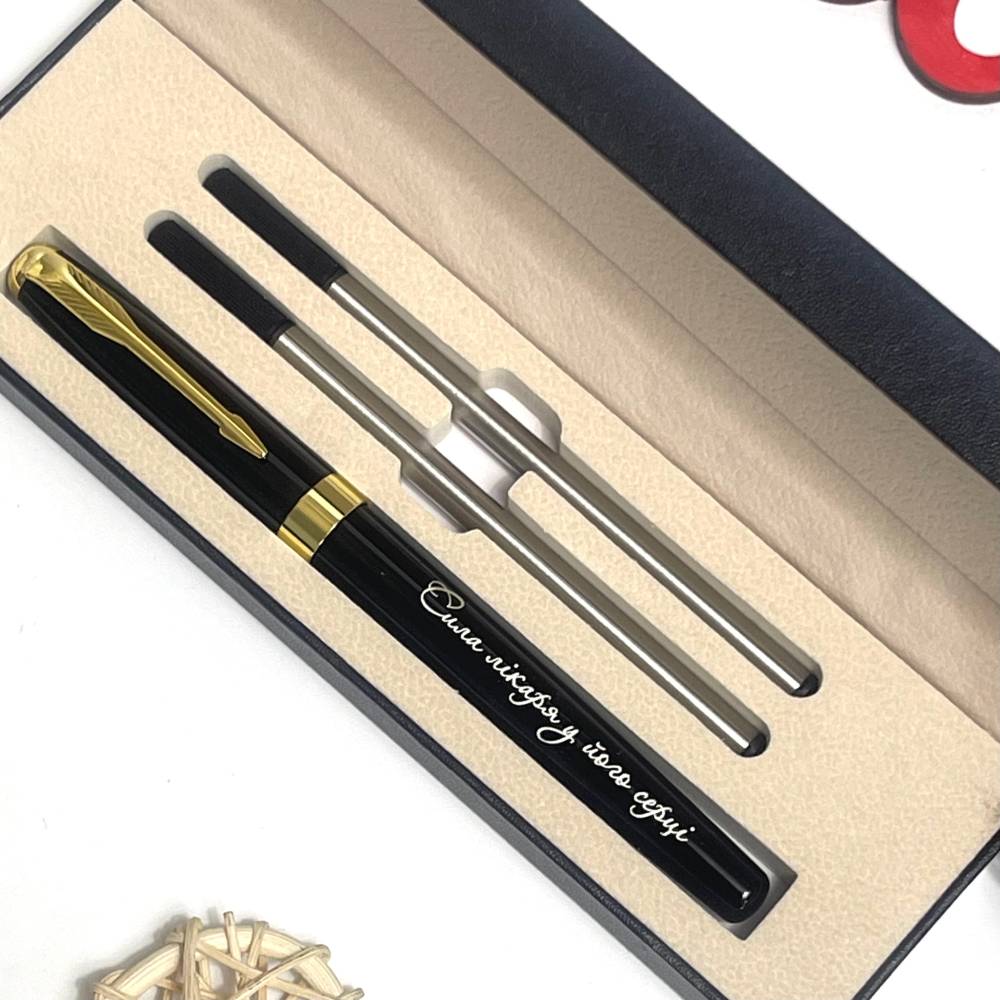 Ручка з гравіюванням виглядає лаконічно й солідно, приємно лежить у руці та підкреслює стиль.