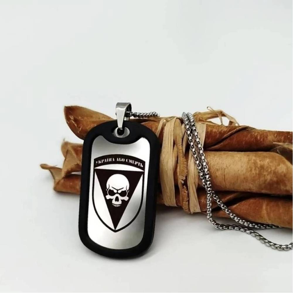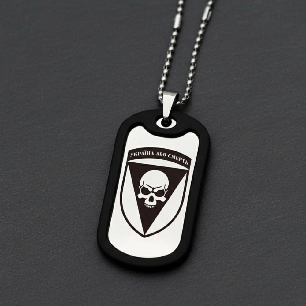 Жетон "Україна або смерть" — коли слова важать, як куля. Це не просто метал. Це — позиція. Тверда, як сталь, пряма, як постріл. Цей персоналізований жетон створений для тих, у кого немає сірого — тільки чорне й біле. Тільки правда й боротьба.