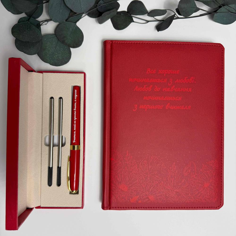 Цей набір стане гарним доповненням робочого простору вчителя та щодня нагадуватиме про приємний момент отримання подарунка.