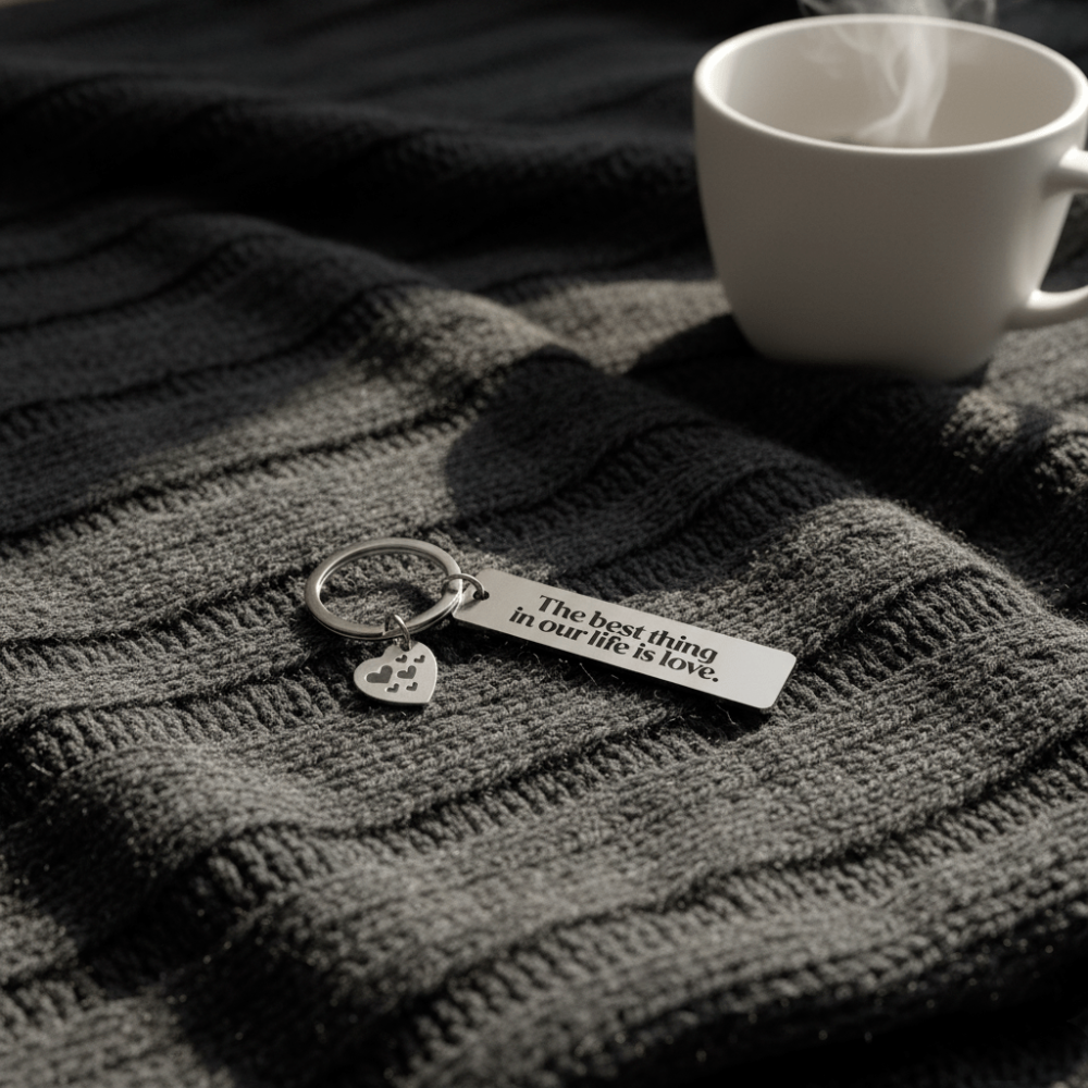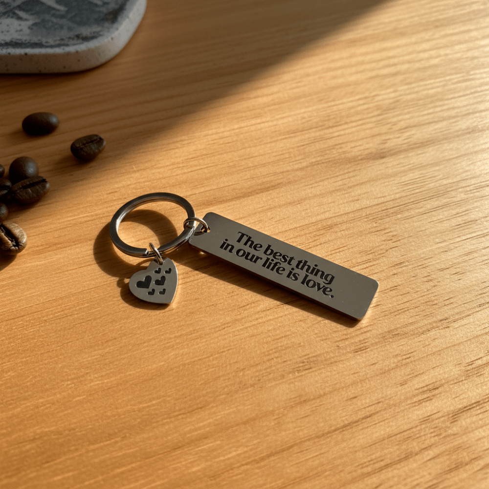 Подарунок дівчині, металевий брелок The best thing in our life is love