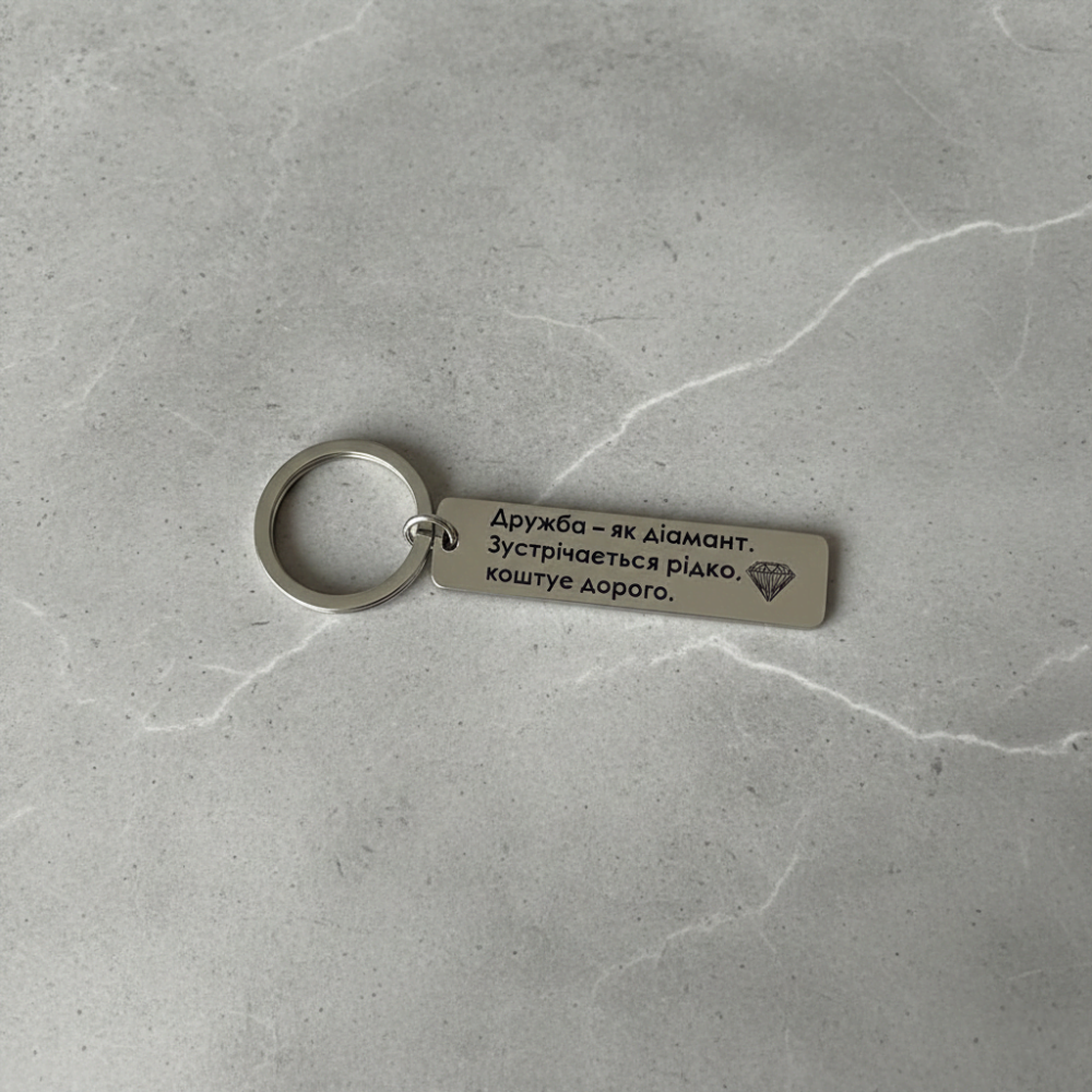 Подарунок другу, брелок для ключів з персоналізованим гравіюванням Дружба як діамант
