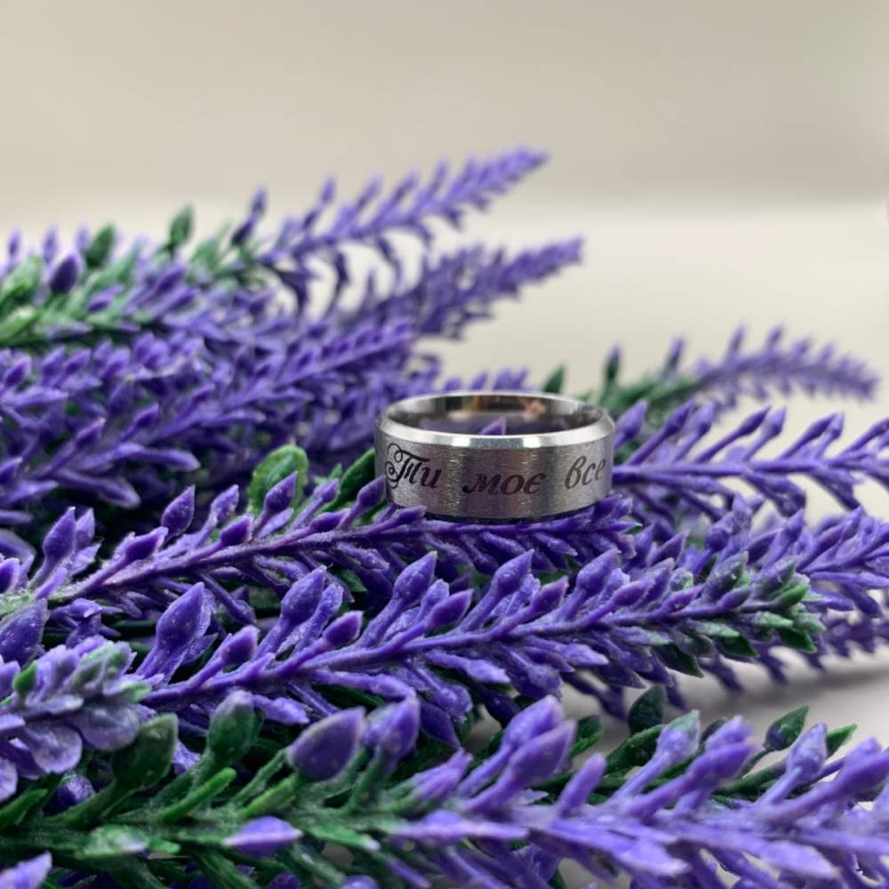 Колір гравіюваня: чорний - на срібній та золотій каблучці, срібний - на чорній.