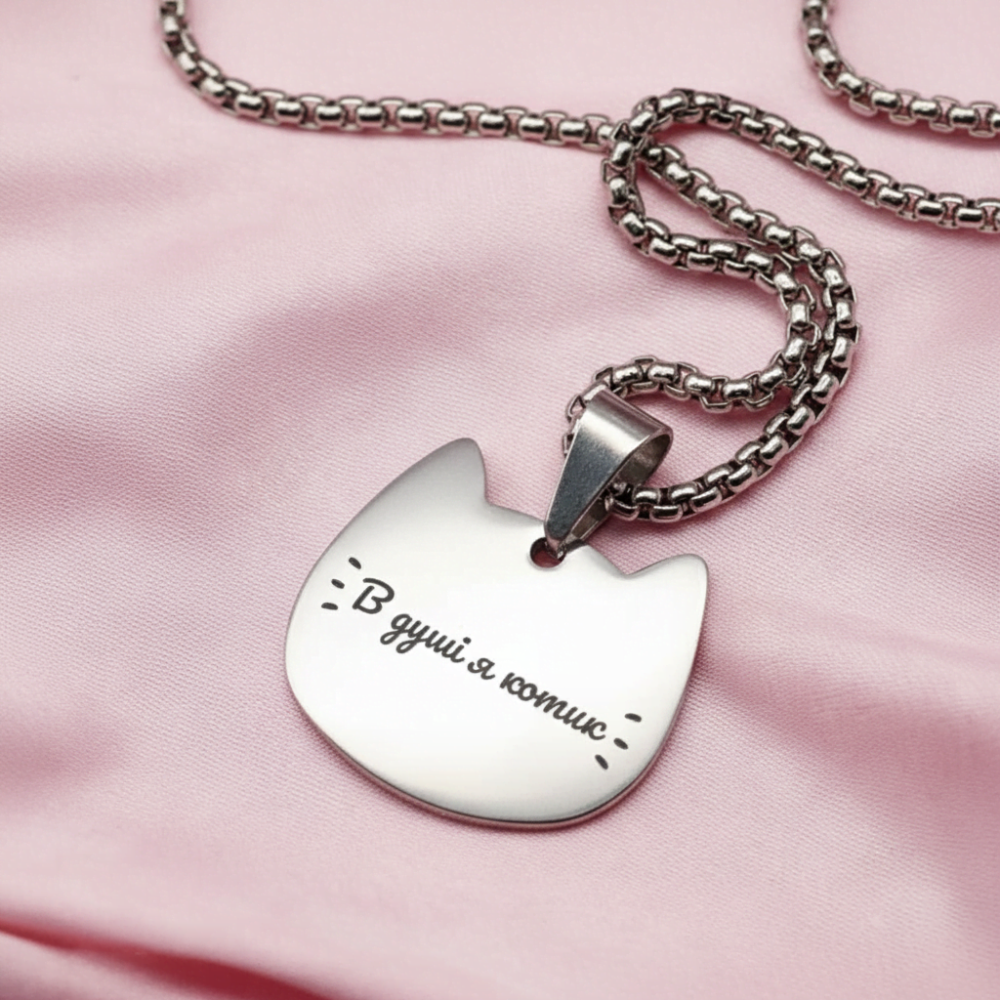 Подарунок Любительниці Котиків - Підвіска "В душі я котик" з гравіюванням