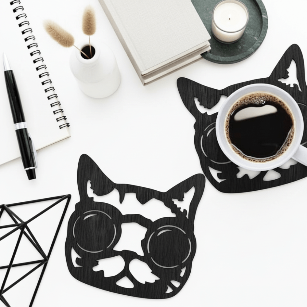 Стильні дерев’яні підставки з оригінальним дизайном «Кіт в окулярах» не лише захистять поверхню столу від гарячого посуду, а й додадуть вашому інтер’єру особливого шарму. Це практичний та водночас декоративний аксесуар, який створює атмосферу тепла й затишку.