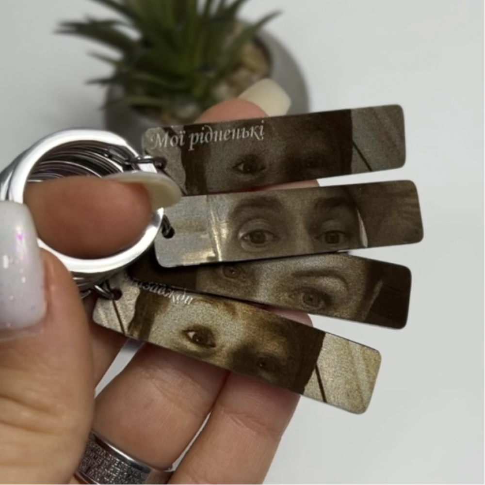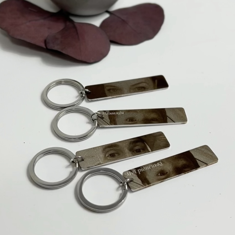 «Сімейний Подарунок Рідним — Брелок з Гравіюванням Фото Очей Близьких» — це персоналізований аксесуар, який щодня буде поруч на ключах або сумці й нагадуватиме про найрідніших. Ми переносимо фото очей (з одного або кількох знімків) у формат лазерного гравіювання — виходить зворушливо, унікально та дуже “про сім’ю”.