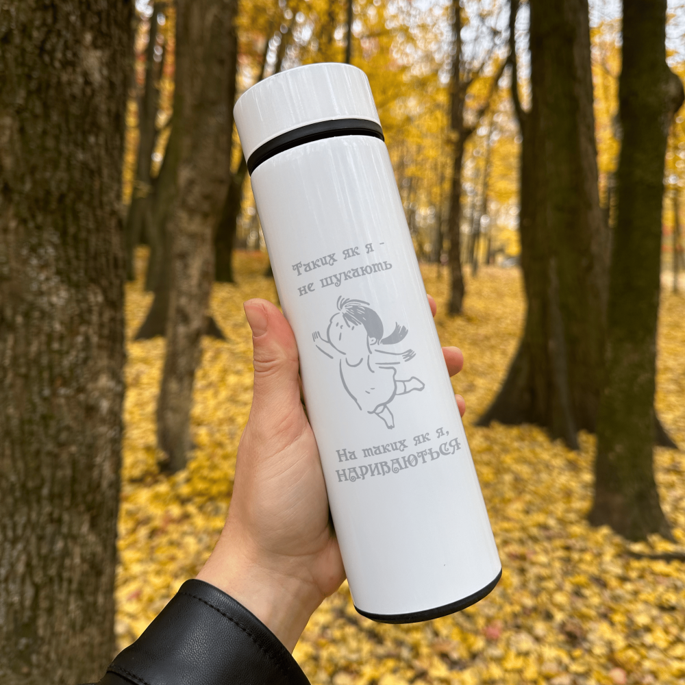 Такой термос удобно брать с собой куда угодно: на работу, учёбу, в дорогу, в зал, на прогулку или в авто. Он помогает сохранять напиток горячим/холодным и при этом работает как стильный аксессуар — потому что надпись точно не останется без внимания. Идеальный вариант для тех, кто любит вещи со смыслом, ценит практичность и хочет выделяться без лишних слов.