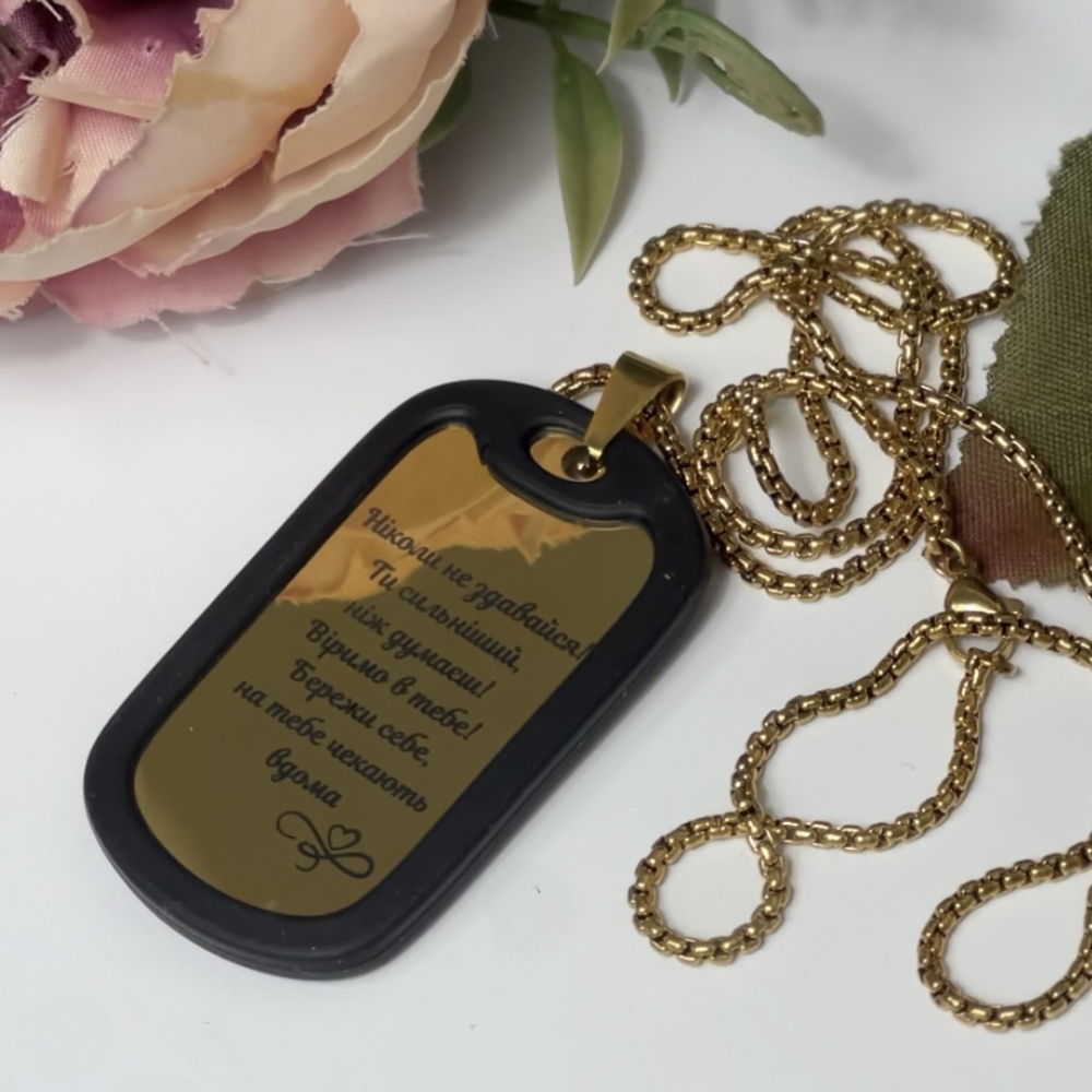 Для жетона возможна персонализация: вы можете добавить свои данные — фамилию, группу крови, дату рождения, номер телефона или другую важную информацию. Это особенно актуально для военных жетонов, которые создаются с учётом функциональности и идентификации владельца.