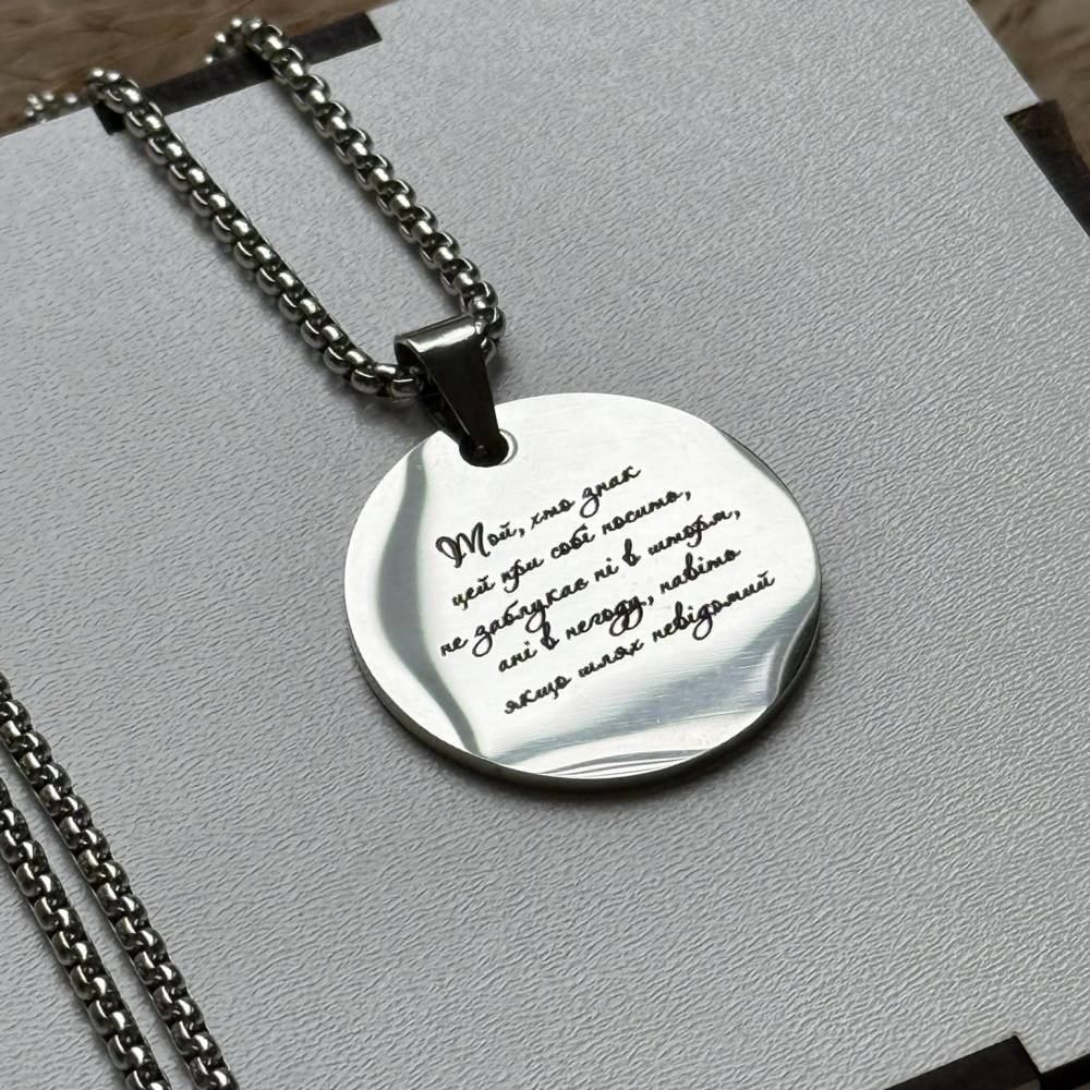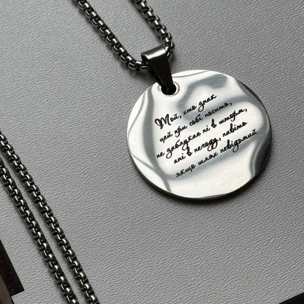 Жетон Круглий, Підвіска з Гравіюванням "Той, хто знак цей при собі носить, не заблукає ні в шторм, ані в негоду, навіть якщо шлях невідомий", подарунок оберіг