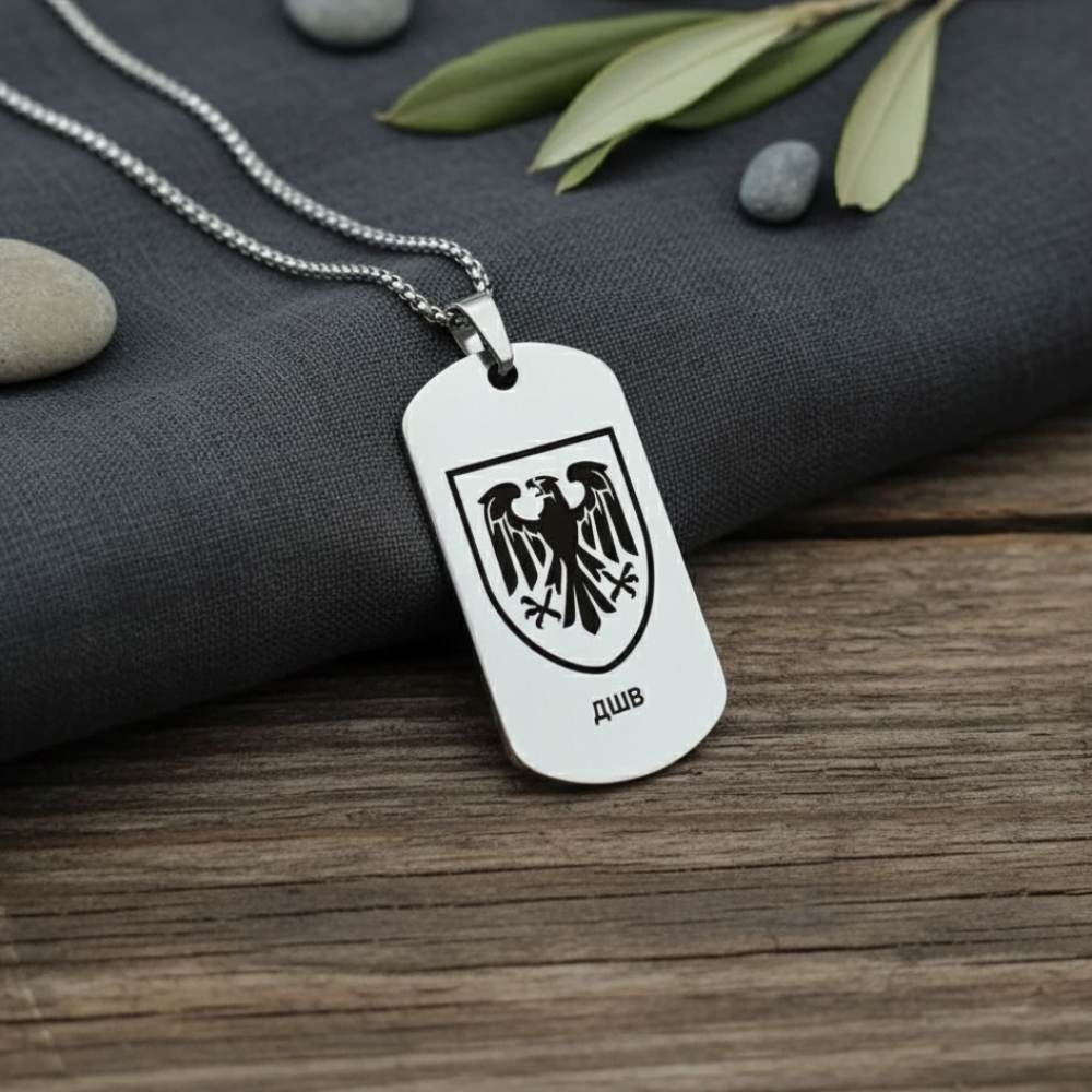 Для жетону можлива персоналізація: ви можете додати власні дані — прізвище, групу крові, дату народження, номер телефону або іншу важливу інформацію. Це особливо актуально для військових жетонів, які створюються з урахуванням функціональності та ідентифікації власника.